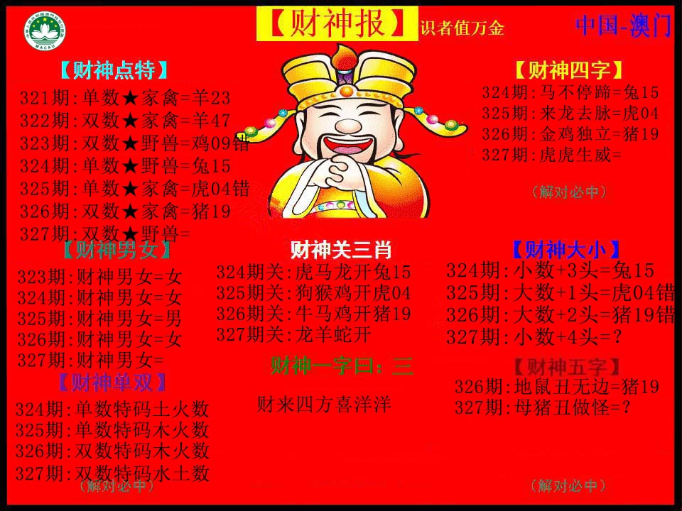 | 327期: 买啥都中 【天肖天肖天肖】开:?00准 |