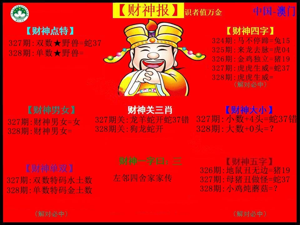 | 327期: 买啥都中 【天肖天肖天肖】开:?00准 |